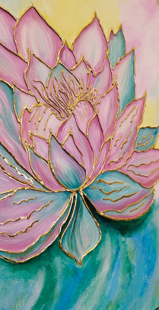 Enchanted Bloom: Gold Leaf Irish Flower in Purple & Grey